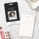 Ce badge d'identification professionnel ou enseignant petite photo noir chic est l'étiquette d'identification parfaite pour les employés ! Le design sombre simple présente une typographie classique minimaliste noire et blanche avec une touche stylée et sophistiquée. Personnalisable dans n'importe quelle couleur. Personnalisez avec le nom de votre entreprise, une photo d'employé, le nom, le titre ou le département, le code QR, le numéro d'identification de l'employé et plus encore !