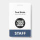 Personnalisez facilement ce badge de nom professionnel personnalisé sans photo ni logo d'entreprise. Un design d'entreprise simple à l'avant et à l'arrière imprimé le même en bleu marine et blanc couleurs entièrement personnalisables en tailles avant et arrière, sans-serif polices de base et moderne et un look professionnel et clair, parfait pour les employés de petite entreprise, patron, invités. Ces fournitures de badges d'identification d'entreprise sont disponibles avec cordon, clip métallique ou avec rétractable. Pas de commande minimum, mais économiser de l'argent et profiter de rabais Zazzle par plusieurs commandes!