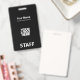 Personnalisez facilement ce badge de nom professionnel personnalisé sans photo ni logo d'entreprise. Un design d'entreprise simple à l'avant et à l'arrière imprimé le même en cool total couleurs noir et blanc entièrement personnalisable en tailles avant et arrière, sans-serif polices de base et moderne et un look professionnel et clair, parfait pour les employés de petite entreprise, patron, invités. Ces fournitures de badges d'identification d'entreprise sont disponibles avec cordon, clip métallique ou avec rétractable. Pas de commande minimum, mais économiser de l'argent et profiter de rabais Zazzle par plusieurs commandes!