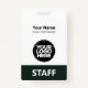 Personnalisez facilement ce badge de nom professionnel personnalisé sans photo, avec le code de la barre de numérisation et le logo d'une grande entreprise. Un design d'entreprise simple dans les tons vert foncé entièrement personnalisable en tailles avant et arrière, sans-serif polices de base et moderne et un look professionnel et clair, parfait pour les employés de petite entreprise, patron, invités. Ces fournitures de badges d'identification d'entreprise sont disponibles avec cordon, clip métallique ou avec rétractable. Pas de commande minimum, mais économiser de l'argent et profiter de rabais Zazzle par plusieurs commandes!