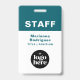 Présentez une image propre et professionnelle tout en soutenant la sécurité du lieu de travail avec ce badge personnalisé avec code-barres et logo d'entreprise sarcelle pour employés. La disposition de conception rationalisée se concentre sur la clarté et l'efficacité, ce qui le rend idéal pour les organisations qui préfèrent un style d'identification minimaliste et axé sur le texte.