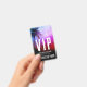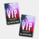 Ce badge VIP présente un design coloré et énergique, parfait pour un concert en plein air ou une fête avec une ambiance Coachella. En haut, un mélange vibrant de bleu, de rose, de rouge et de violet représente les silhouettes des participants au concert et un palmier en haut à gauche, capturant l'atmosphère animée du festival. L'image se fond doucement dans le noir en bas, où le nom de l'événement, la date et "All Access Pass" sont affichés dans des polices blanches épurées, avec "VIP" en gras en haut.