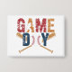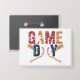 Un graphisme audacieux et minimaliste "Game Day" avec un design en détresse. La lettre "O" est remplacée par un baseball détaillé, tandis que les chauves-souris croisées sous le mot "Game" soulignent le thème sportif. La silhouette d'une pâte en action renforce l'attrait dynamique, rendant ce design parfait pour les vêtements et accessoires de jour de jeu.