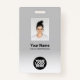 Personnalisez facilement ce badge personnalisé de nom d'employé avec photo, code de barre de numérisation et logo d'entreprise avec un dégradé blanc sur la couleur gris clair arrière - plan. Un simple nom d'id de sécurité personnalisé marque le design d'entreprise dans des couleurs minimalistes neutres gris et blanc entièrement personnalisables en tailles avant et arrière, sans-serif polices de base et moderne et un look professionnel et clair. Les badges d'identification sont disponibles avec cordon, clip métallique ou avec rétractable. Pas de commande minimum.