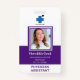 Ce badge d'identification de sécurité violet moderne comporte votre nom, rôle, titre et photo. Conçu pour les employés des hôpitaux et des centres médicaux. Sur la maquette, le design est violet mais on peut facilement changer les couleurs.