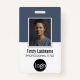 Arrière - plan bleu-gris denim doux avec une zone pour ajouter la photo de l'employé. Un design d'entreprise de base qui met en évidence les logos de votre bureau et le nom de votre employé. Vous pouvez ajouter un code à barres à l'arrière. Vous pouvez également modifier la couleur de l'arrière - plan.