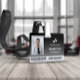 badge d'identification de l'employé avec un design épuré minimaliste en noir et blanc. Ajoutez une photo de l'employé avec son nom et sa profession contre un arrière - plan noir dégradé. Personnalisez-vous avec votre logo et votre code à barres.