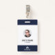 Un badge d'identification d'entreprise moderne comportant la photo, le nom, la profession d'un membre du personnel. Celui-ci comprend également le nom et le logo de l'entreprise sur l'avant et l'arrière du badge. La couleur principale du badge peut être personnalisée en changeant la couleur de fond.