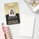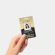 **Veuillez noter que l'arrière - plan est imprimé pour avoir l'air métallique, mais le produit n'est pas en métal et n'est pas en feuille.** Représenter votre entreprise avec style en fournissant au personnel des badges d'identification modernes et professionnels. Le logo, la photo, le code à barres et tous les termes de ce modèle sont faciles à customiser. Le design noir et or présente un arrière - plan métallique imitant avec un élégant arc incurvé, le logo de votre entreprise, une image carré, le nom et le titre de l'employé, et UPC / code barre sur le dos. Il peut fournir l'organisation et la sécurité du personnel de l'entreprise, tout en présentant la marque de l'entreprise avec un aspect classique élégant. Veuillez noter que l'or est imprimé en couleur et non en métal.