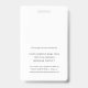 Maintenez un look propre et moderne pour votre équipe avec ces bannières personnalisables d'identification d'employé vertical, avec un minimaliste arrière - plan blanc et un élégant texte noir sans serif. Chaque badge peut être personnalisé avec une photo d'employé, un nom et deux lignes de texte personnalisées supplémentaires, idéal pour inclure un numéro d'identification, un titre d'emploi, un département ou un bureau. Ajoutez le logo de votre entreprise en haut pour créer une identité de marque professionnelle unifiée. Le verso comprend un champ de texte personnalisé optionnel, parfait pour les instructions de retour, les coordonnées d'urgence ou tout autre détail important. Conçus pour la simplicité et la fonctionnalité, ces badges sont idéaux pour les entreprises, les écoles, les établissements de soins de santé, les événements, et plus encore, partout où une solution d'identification polie et sécurisée est nécessaire.