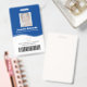 Un badge d'identification des services alliés de la santé bleu foncé est personnalisé avec la photo, le nom, le rôle de l'employé, le logo de l'entreprise, le nom de l'entreprise, le numéro de l'employé et un code à barres pour l'entrée dans les zones réglementées. Informations perdues ou autres informations importantes sur le contraire. Conception par www.mylittleeden.com