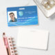 Insigne d'identification photo horizontale de l'employé. Conception avec arrière - plan bleu avec conception ondulante de la lumière d'onde. Ajoutez facilement le logo de votre entreprise en utilisant notre image modèle. ID avec photo, nom, nom de société, numéro d'identification ou toute autre information que vous souhaitez. Retour avec la zone pour l'information dans le badge coque se perd. Également disponible en présentation verticale. À tous ceux qui travaillent dans les lignes, MERCI POUR VOTRE SERVICE EXTRAORDINAIRE!