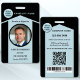 Carte d'identité avec photo avec photo et logo sur mesure sur un design noir et bleu poussiéreux. À l'arrière, vous pouvez ajouter un code à barres personnalisé ou un code QR et des textes supplémentaires (ou supprimer les modèles). Idéal pour créer une présence captivante.