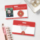 Le badge moderne rouge, or et blanc de pompier d'identification comporte une seule photo sur le devant, le numéro d'identification, le nom du service des incendies, le nom et le titre. Personnalisez avec votre propre logo et code à barres. Ajoutez les coordonnées sur le dos et votre logo. Pour modifier ce modèle, cliquez sur "customiser plus loin".