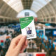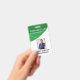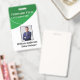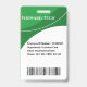 Badge d'identification d'employé vertical avec un fond de deux nuances de vert. Tous les éléments sont modifiables ou amovibles. Les éléments du recto du badge comprennent : le nom de l'entreprise, la photo de l'employé, le nom de l'employé, le département de l'employé. Le verso du badge comporte un code-barres de sécurité. Disponible en orientation horizontale. Fente en haut pour un cordon. Les éléments du verso du badge comprennent : le nom de l'entreprise, le numéro d'identification de l'employé, le département de l'employé, l'adresse e-mail de l'employé, le téléphone et le poste de l'employé ainsi que le code-barres de sécurité. Tous ces éléments peuvent être modifiés ou supprimés.