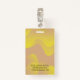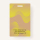Modèle photo avec logo, badge d'identification d'entreprise pour employés, hôpital, infirmières, réunions spéciales. Ondes jaunes dégradées et informations sur un cadre transparent.