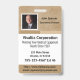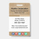 Badge d'identification vertical pour employés avec deux nuances de beige et un fond beige marbré. Tous les éléments sont modifiables ou amovibles. Les éléments sur le devant du badge comprennent : photo de l'employé, nom de l'employé, département de l'employé, nom de l'entreprise et slogan, adresse de l'entreprise, numéro de téléphone, site web et adresses e-mail. Le verso du badge comporte également des informations sur l'entreprise qui sont entièrement personnalisables. Également disponible en orientation horizontale. Fente en haut pour un cordon. Tous ces éléments peuvent être modifiés ou supprimés.