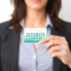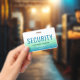Simple, moderne, bleu, vert et blanc foncé combinaison de couleurs pour badge d'identification horizontale, avec une large désignation et sans photo. Il est facile de personnaliser et de customiser tous les éléments graphiques et le texte. Il y a l'adresse de retour personnalisée à l'arrière. Un choix parfait pour de nombreuses entreprises.