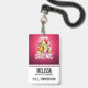 Insigne de nom avec un design graphique de Noël lumineux et festif. Le texte dit Joyeux Noël & Bonne Année. Conçu avec un monticule de cadeaux en forme d'arbre avec des flocons de neige festifs, des étoiles, des baubles de noël et des étincelles à l'air brillant. Aiguilles de pin et illustration en forme d'arbre également inclus dans cette image de vacances. L'arrière - plan est une couleur rose rougeâtre vibrante.