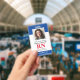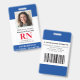 Carte d'identité photo moderne Infirmière inscrite à la RN Insigne. Conception avec arrière - plan bleu et blanc médical, photo unique, nom d'hôpital, profession et nom. Personnalisez votre code à barres et vos coordonnées. Les badges modernes d'identification simplifient l'identification des employés par les clients et les clients. Pour modifier ce modèle, cliquez sur customiser plus loin.