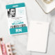 Simple et professionnel Infirmière diplômée RN badge vertical avec un logo personnalisé, conçu dans une combinaison de couleurs sarcelle, blanc et noir.