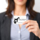 Un Airedale Terrier et un chat assis en train de se laver la patte sont représentés sur l'avant de cet insigne de nom pour une clinique vétérinaire. Pourrait également être utilisé pour une pension ou un salon de toilettage pour animaux.