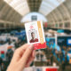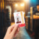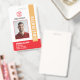 Un badge d'identification moderne pour les sapeurs-pompiers et les employés du service d'incendie. Le design comprend la photo personnelle du sapeur-pompier, le nom, l'identifiant de badge et la date d'expiration. De plus, il comporte un logo et le nom du service d'incendie. Le mot "Sapeur-pompier" est écrit en lettres majuscules grasses avec une disposition verticale.