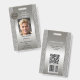 Carte d'identité photo en style de construction métallique avec espace pour votre photo et logo personnalisé. À l'arrière, vous pouvez ajouter un code à barres personnalisé ou un code QR ainsi que des textes supplémentaires ou supprimer les modèles.