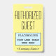 Ce badge respectable présente le message « INVITÉ AUTORISÉ », ainsi qu'un nom de société personnalisable ou un autre message personnalisé. Un badge de ce type peut être utilisé pour identifier qu'une personne sur un lieu de travail ou en entreprise est un invité/visiteur autorisé.