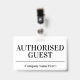 Cette conception de badge glamour comporte le message "INVITÉ AUTORISÉ" et un nom de société personnalisable ou un autre message personnalisé. Un badge comme celui-ci pourrait peut-être être utilisé pour montrer que quelqu'un dans une entreprise ou un lieu de travail est un invité autorisé ou un visiteur. [~Z0000307]