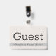 Cette conception de badge moderne comporte le message "Invité", ainsi qu'un nom de société personnalisable ou un autre message personnalisé. Un badge comme celui-ci pourrait être utilisé pour indiquer qu'un visiteur ou un invité sur un lieu de travail est autorisé à y être. [~Z0000307]