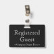 Cette conception de badge à l'ancienne comporte le message "Invité inscrit", ainsi qu'un nom de société personnalisable ou un autre message personnalisé. Un badge comme celui-ci pourrait peut-être être utilisé pour indiquer qu'une personne est un invité ou un visiteur connu et autorisé dans une entreprise ou un lieu de travail. [~Z0000307]