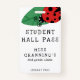 Couper comme une passe de l'élève de bogue avec une coccinelle rouge et noire assise sur une feuille verte. Le pass pour la salle des étudiants est écrit dans une grande police amusante. Personnalisez avec le nom de l'enseignant et le but de la passe de la salle. Le dos est assorti à une couleur verte.
