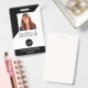 Cette conception moderne de badge de nom peut être customisée avec votre nom d'entreprise, logo et coordonnées ainsi qu'une photo d'employé et un code à barres.