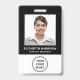 Un badge d'identification d'employé noir moderne et professionnel avec sa photo, son nom et son poste, ainsi que le logo de votre entreprise ou de votre organisation. Au verso, ajoutez des informations supplémentaires et des codes QR et barres optionnels.