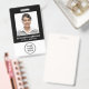 Badge d'identité nominatif noir moderne et professionnel avec photo, nom et titre de l'employé, ainsi que le logo de votre entreprise ou organisation. Au verso, ajoutez toute information supplémentaire et un code QR facultatif.