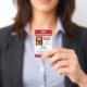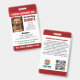 Badge de chien de service vertical pour votre chien d'assistance auditive en rouge. Facilement personnalisable avec une photo d'identité du chien qui vous aide, le nom et l'information du chien (comme la race, le numéro d'enregistrement et le numéro de micropuce), le nom du maître et votre numéro de téléphone et l'adresse en coque, vous et votre chien êtes séparés. Texte supplémentaire que vous pouvez customiser après vos besoins des deux côtés de l'insigne d'identification de chien service, avec un code QR et un modèle de logo au dos.