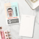 Créez votre propre badge d'identification moderne pour le personnel hospitalier ou médical, comme les infirmières autorisées (IA), les infirmières auxiliaires, les infirmières praticiennes, les ambulanciers, les médecins, les auxiliaires médicaux (MD) et le personnel bénévole. Téléchargez votre propre photo standard de passeport et, éventuellement, un code à barres pour agir comme une clé de passe électronique. Il existe des champs distincts pour votre numéro d'identification et le titre ou le poste de travail. N'hésitez pas à ajouter votre propre logo. Avec une pêche pastel, des couleurs bleu et jaune, avec votre titre/position en rouge. Les couleurs peuvent également être changées en fonction de votre marque organisationnelle ou corporative.