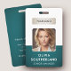 Un badge d'identité d'entreprise moderne et élégant conçu dans une palette de couleurs vert profond. Facilement personnalisable avec une photo d'employé, son nom, son titre, le logo de l'entreprise et d'autres détails commerciaux. La mise en page comporte une typographie propre pour une apparence professionnelle et claire, assurant une identification facile. Ce badge d'identification est disponible avec des options pour un cordon, un clip métallique ou un support rétractable. Aucune commande minimale requise.
