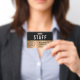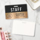 Un badge d'identification de personnel professionnel moderne, d'employé ou d'équipage pour votre entreprise, événement, conférence ou congrès portant le logo de votre entreprise ou organisation contre un arrière - plan métallique en or. Ajoutez un nom et un titre de travail ou l'événement et la date.