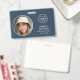 Impressionnez avec un badge d'identification élégant et professionnel. Ce modèle recto-verso présente votre photo d'identité dans un cercle et est personnalisé avec un nom, un logo, des informations de contact et un code QR scannable. Personnalisez le texte pour qu'il corresponde à votre marque. Ce design moderne convient à de nombreux lieux de travail et professions différents, notamment les professionnels du secteur corporatif, les vendeurs au détail, les consultants en beauté, le personnel hôtelier, les petites entreprises, les badges de conférence et plus encore ! Couleurs imprimées : bleu ardoise, noir et blanc.