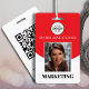 Badge Logo de photo rouge et nom de l'employé avec code