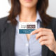 Ajuster facilement le badge de nom de l'entreprise ou de l'employé avec arrière - plan rayé noir et gris. Tout le texte est réglable. Ajoutez votre propre logo d'entreprise. Fait pour des logos longs et horizontaux. Si l'ajustement rapide des modèles ne fonctionne pas pour votre logo, cliquez sur l'option customiser plus loin pour pouvoir supprimer et ajouter votre logo à la carte. Option couleur bleue.