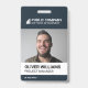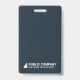 Un badge d'identification employé moderne. Le design comprend votre logo d'entreprise, votre nom d'entreprise et votre ligne d'étiquettes. Il montre une photo d'identité d'employé de grande taille. Les informations peuvent être personnalisées et comprennent le nom de l'employé, le titre de l'emploi et le numéro d'identification de l'insigne. Le dos de l'insigne d'identification montre le logo et le nom de l'entreprise. Couleur : bleu foncé