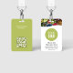 Ce design comprend un badge de votre logo ici, une entreprise, code à barres photo QR, employé du personnel d'affaires, nom et titre, marque, un minimaliste simple, professionnel moderne, avec fournitures de bureau standard, un style vert simple et simple.