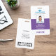 Ajoutez les détails de vos employés sur ces badges du personnel médical avec leur photo et leur nom. Vous pouvez également saisir des champs pour entrer le nom de votre hôpital ou centre de soins de santé, son titre et son abréviation, son numéro d'identification d'employé. Ajoutez votre logo et le titre ou le rôle de l'employé en caractères gras pour faciliter l'identification. Customisez avec un code à barres au verso si nécessaire, ainsi que les informations sur l'adresse de retour, y compris le numéro de téléphone de votre établissement