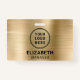 badge de nom métallique en or brossé moderne avec le logo de votre entreprise ou organisation. Ajoutez un nom et un titre d'emploi dans une simple typographie.