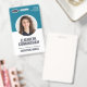 Un badge moderne et simple qui ne détourne pas des détails importants. Facile à lire de loin. Ajoutez un logo personnalisé et les détails de l'entreprise. Ajoutez le nom, la photo et le titre professionnel de l'employé. La barre de couleur peut être modifiée pour correspondre aux couleurs officielles de l'entreprise. À l'arrière, ajoutez des informations supplémentaires telles que l'adresse de retour et le numéro d'identification de l'employé. Parfait pour les logos de forme ovale.