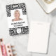 Ce badge présente un arrière - plan empreinte de léopard moderne en argent et en faux papier noir et moderne divisé par un bloc de couleur blanche. Customisez-le avec votre photo carré, nom, titre de travail, logo, nom de l'entreprise, adresse ou autres informations, et code à barres en option.
