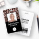 Ce badge comporte un arrière - plan empreinte de léopard rose moderne tendance en or et en fausse feuille noire sur la moitié supérieure et un solide arrière - plan noir sur le bas. Customisez-le avec votre photo carré, nom, titre de travail, logo, nom de l'entreprise, adresse ou autres informations, et code à barres en option.